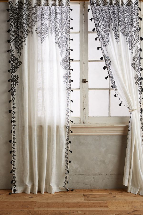 a piece of cloth that hangs down from above a window and can be used to cover the window