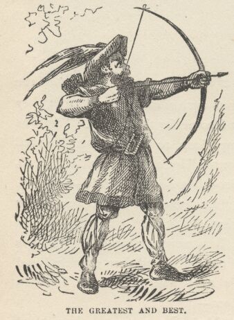"I bet you he was, Huck. Oh, he was the noblest man that ever was. They ain't any such men now, I can tell you. He could lick any man in England, with one hand tied behind him; and he could take his yew bow and plug a ten-cent piece every time, a mile and a half."